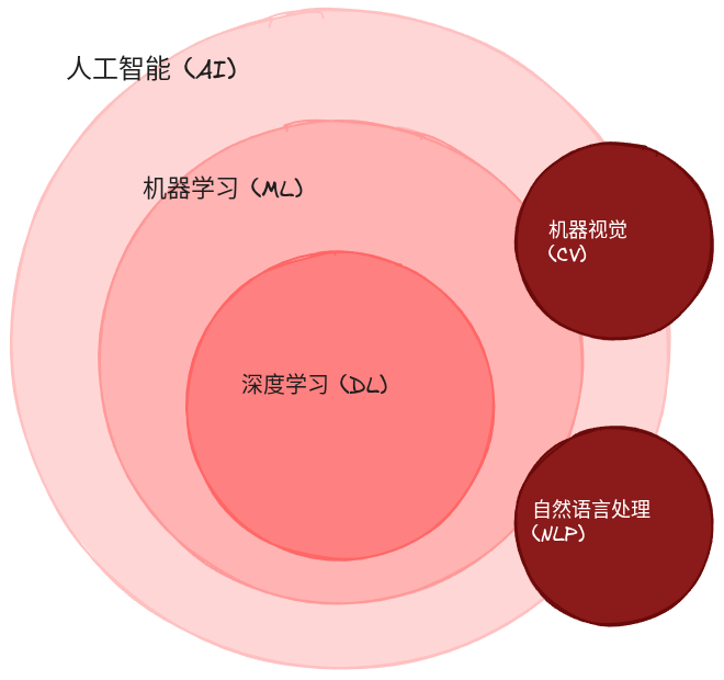 很多人分不清AI、机器学习(ML)、深度学习(DL)的区别。其实用一张经典的同心圆图就能说明白: