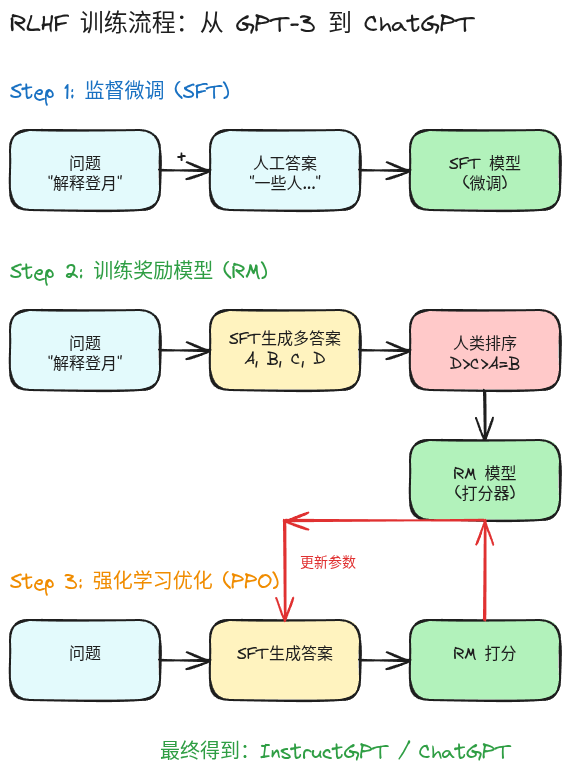 RLHF 三步流程图